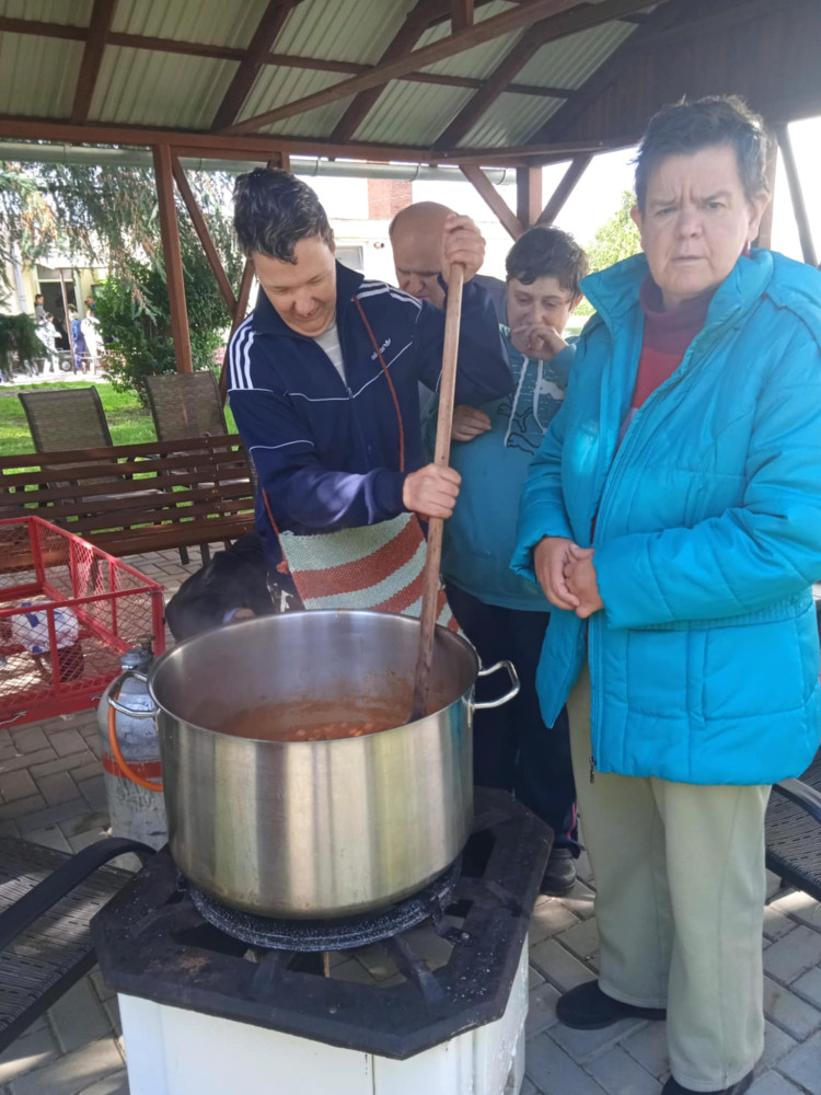 A Gasztrokaland szakkör idén utolsó alkalommal szervezett szabadtéri, közösségi főzést az Új épület részlegén. A már hagyománynak tekinthető bográcsparti legkedveltebb programjaink közé tartozott. A délre elkészült bográcsban főtt paprikáskrumplit az ellátottakkal közösen készítettük, a szakkör résztvevői lelkesek voltak az egyes munkafolyamatokban.