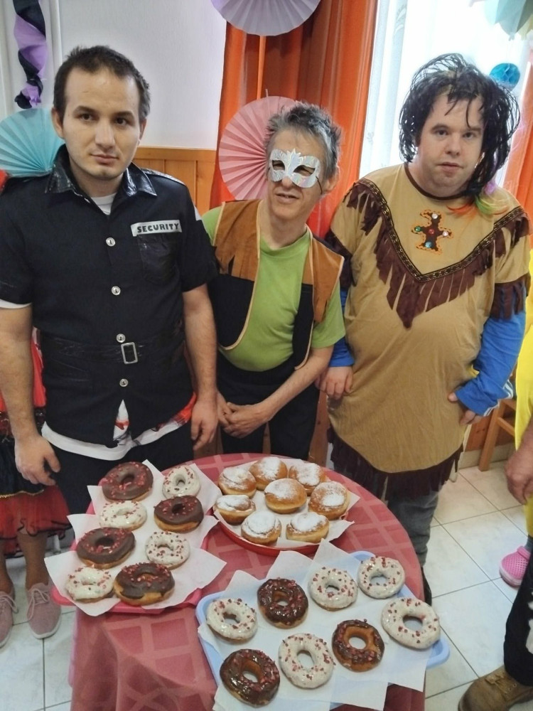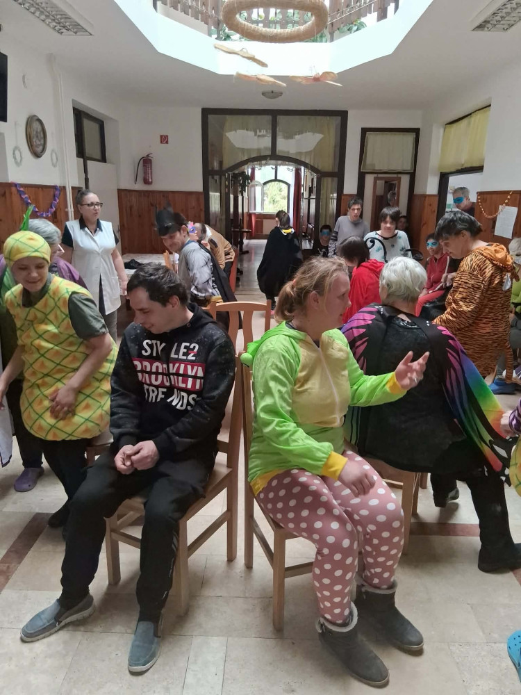 Lakóink kreatív, vicces és aranyos jelmezekbe bújtak, és örömmel vettek részt a zenés-táncos programokon. Az ünnepi hangulatot a farsangi fánk elfogyasztása tovább fokozta: volt, ahol porcukros-lekváros, máshol mázas finomságokat kóstolhattak ellátottaink. Több helyszínen is ügyességi és tréfás feladatok színesítették a napot, amelyek sok nevetést és jókedvet hoztak a lakók és a dolgozók számára egyaránt. A nap jó hangulatban, sok vidám pillanattal zárult.