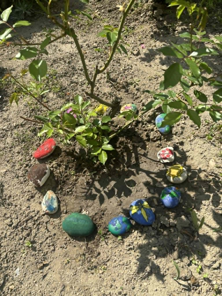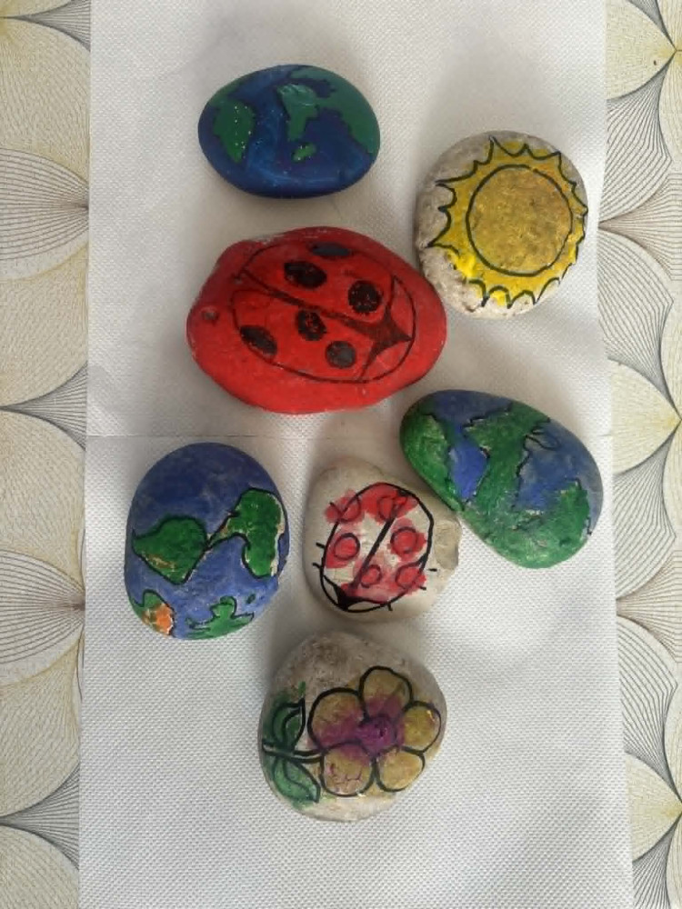 A programot egy rövid természetjáró sétával kezdtük, amely közben megfigyeltük a fákat, virágokat, madarakat és rovarokat. Ezalatt közösen beszélgettünk a természet szépségeiről és védelmének fontosságáról. A séta során köveket is gyűjtöttünk, amelyeket a program második felében közösen kifestettünk.