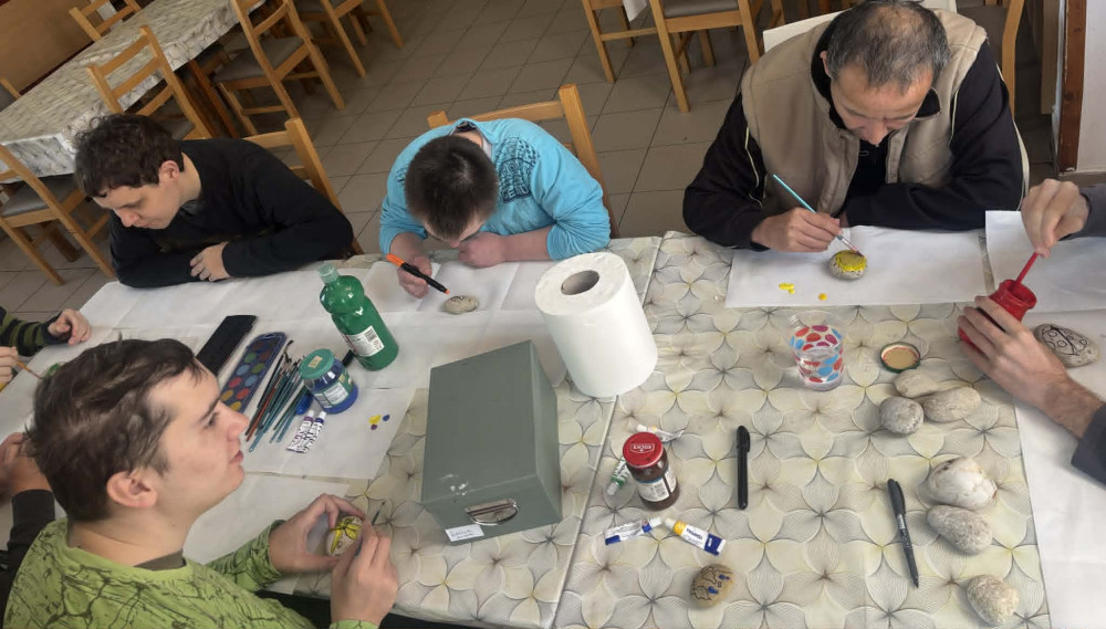 Az elkészült színes kövekkel feldíszítettük az épület előtti területet. A program jó hangulatban telt, erősítette a közösséget és maradandó élményt nyújtott minden résztvevő számára.