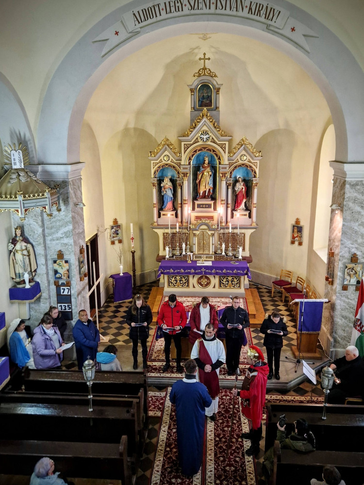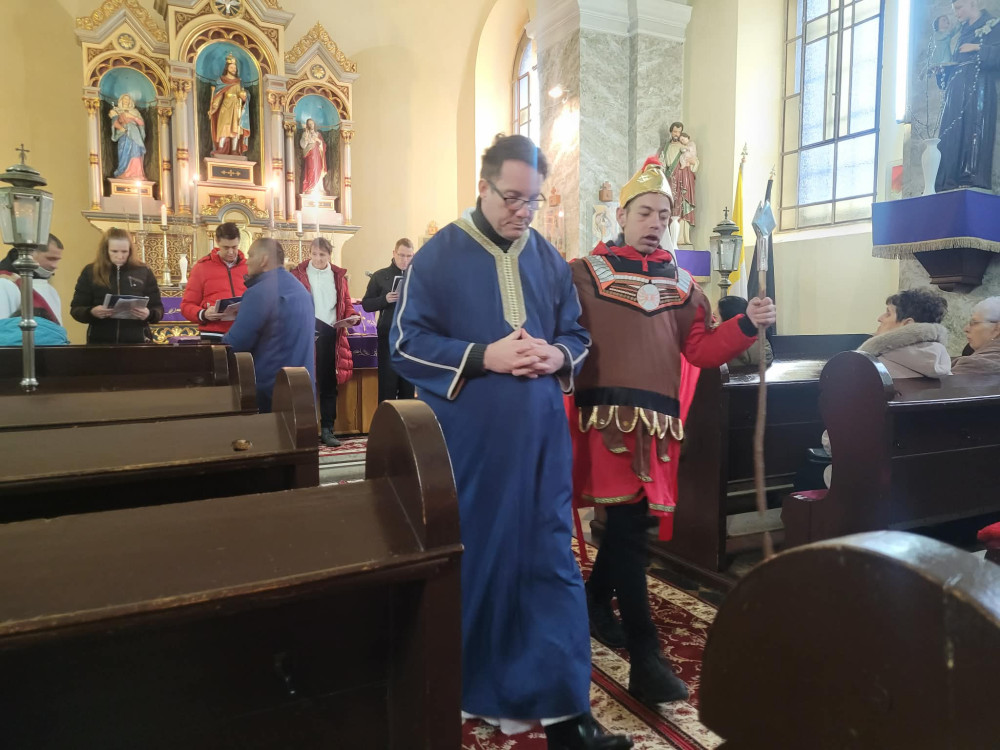 Virágvasárnap már hagyományosan Paál Sándor Ede atya meghívására azért gyűltünk egybe a gyepükajáni templomban, hogy a szentmisét követően, lakóink húsvéti misztériumjátékának előadásával kicsit mi is hozzájáruljunk, elmélyítsük a húsvétra való lelki készületet.