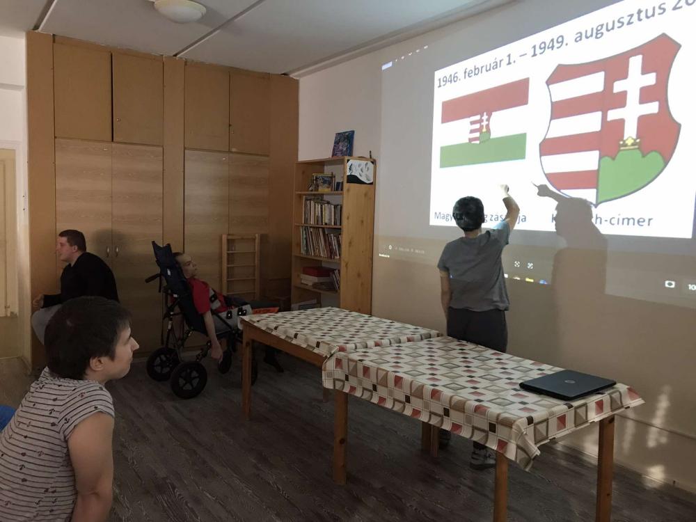 Az 1956-os forradalom és szabadságharcra emlékezve lakóinkkal egy interaktív foglalkozás keretében, ismeretterjesztő jelleggel tartottunk foglalkozást, melyben megismerkedhettek a kor körülményeivel és az akkori eseményekkel, valamint következményeivel. Különös tekintettel a veszprémi eseményekre és Brusznyai Árpád szerepére. Az alkalomhoz többekkel készítettünk hurkapálcára lyukas magyar zászlót, melyekkel elmentünk a veszprémi Brusznyai szoborhoz, ahol elhelyeztük tiszteletünk jeléül a kis zászlóinkat.