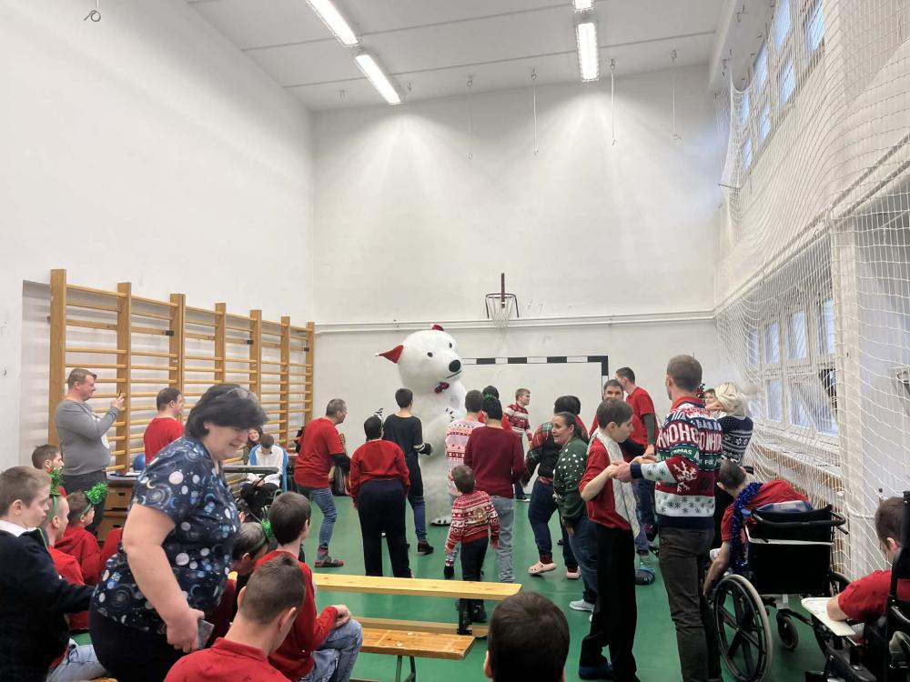 Ezt követően a mulatság még nem ért véget, mert a táncoló maci érkezett el hozzánk, aki egy kisebb bulit és táncos mulatságot csapott a gyerekekkel, azok nagy örömére, miközben sok sok ajándékot is hozott. Mire a móka véget ért, a Jézuska is megérkezett a csoportszobákba és mindenki örömmel vette birtokba új ajándékait.