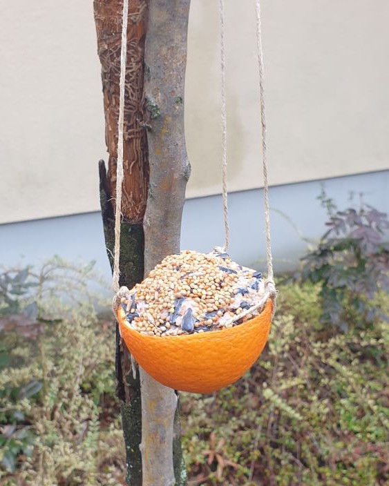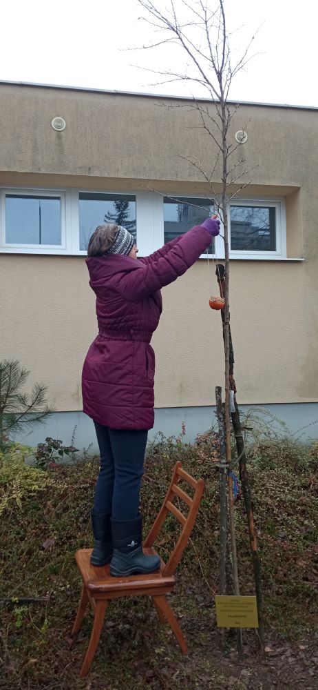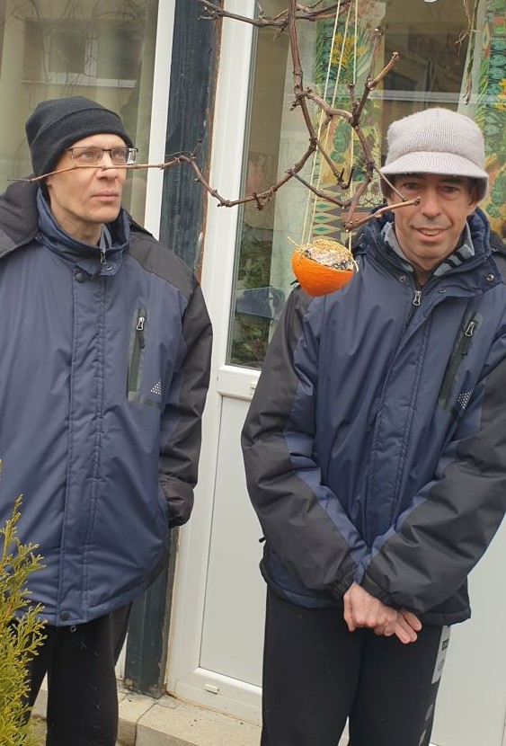 2026. 01. 30-én a Hóvirág Bölcsőde csoportjai látogattak a Galagonya Otthonba, hogy átadják a narancshéjba öltöztetett madáreleséget.