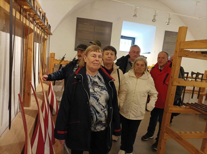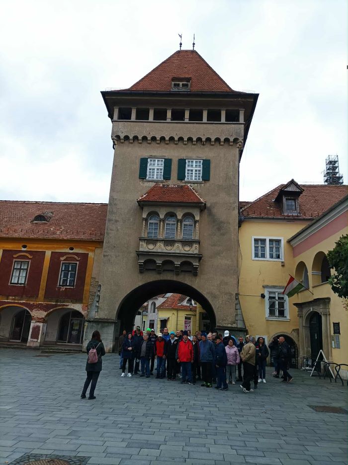 2025. október 07-én lakóinkkal Kőszegre kirándultunk. Első állomásunk a cáki pincesor volt, ahol a helyi idegenvezető röviden ismertette a hely történetét. Itt lehetőségük volt tízóraizni és megkóstolni a „Hordómosó” forrásvizét, ami nagyon finom volt. Kellemes sétát tettünk a gesztenyefák alatt. Majd utunkat folytattuk Kőszegre. Jurisics vár látogatását már mindenki izgatottan várta. Egy rövid történelmi ismertető után indultunk a vár felfedezésére. A lovagteremhez vezető üvegfolyosó egy-két lakónak kihívást jelentett, de kis segítséggel legyőzték a félelmüket. Ellátottjainknak nagyon tetszett a fegyvertár, ahol saját felelősségre kézbe is vehették azokat. A földesúri asztal és konyha kiállítás teremben fel lehetett venni a királyi palástot és koronát. Néhány lakó nagyon élvezte, hogy belebújhat a fejedelmi ruhákba. Az állandó kiállításon a szent korona másolatát, a vár kutatástörténetét és régészeti leleteket tekintettünk meg. Végezetül 5 bátor férfival felmentünk a toronyba, ahonnan csodálatos panoráma tárult elénk. A harangot négyszer kongattuk meg, ami azt jelentette, hogy ide még visszatérünk.