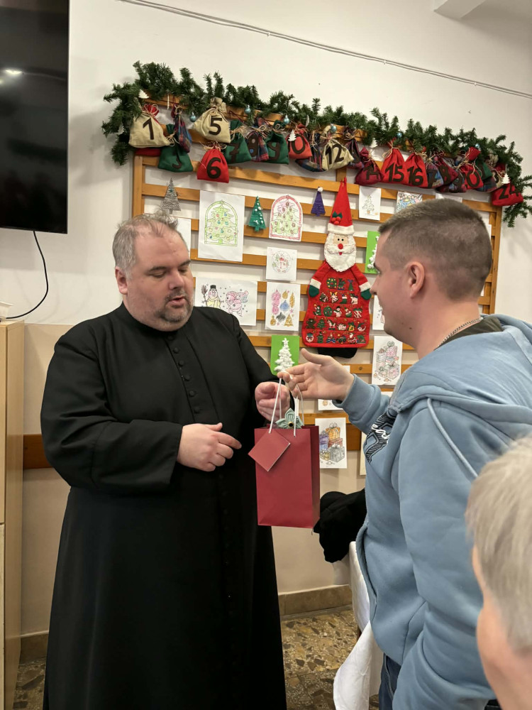 A közös ima után az atya szentképet ajándékozott a lakóknak, amelyet mindenki nagy örömmel fogadott. Az apró ajándék nemcsak emlékként szolgál, hanem a gondoskodás és az áldás jeleként is elkíséri őket a mindennapokban.