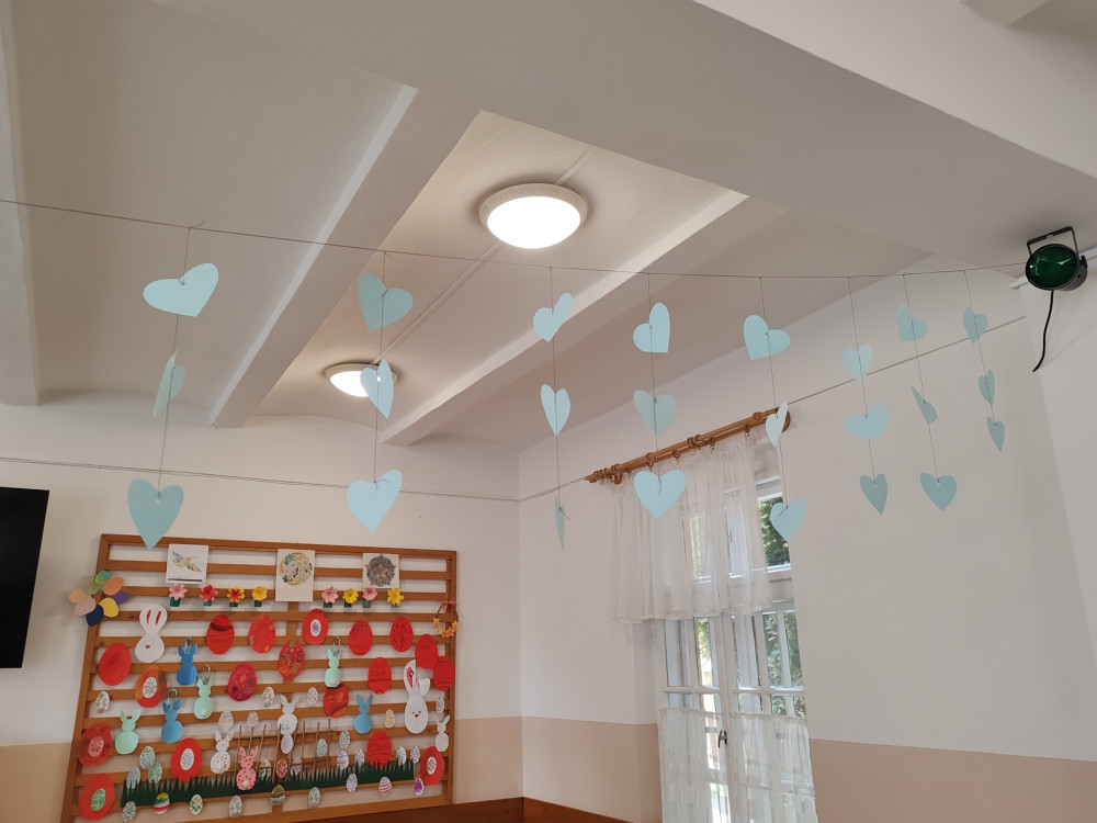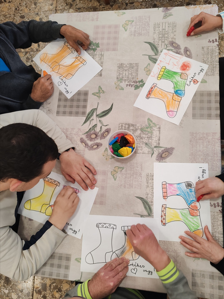 A lakók kék színű papírból szíveket vágtak ki, melyekből dekoráció készült. A foglalkozás során a szorgos kezek felemás zoknikat különböző színekkel és mintákkal  tették igazán egyedivé. Beszélgettünk az egyediség és az elfogadás fontosságáról, mely segít tudatosítani mindannyiunkban, hogy minden ember értékes és különleges.