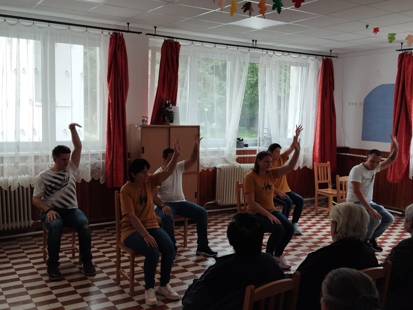 Fiataljaink táncos produkcióval lepték meg az időseket, amelyet mosoly, taps és meghatódottság kísért. Ajándékként saját kezűleg készített virágcsokrot és kerámia vázát adtunk át, jelezve tiszteletünket és szeretetünket. Az ünnepi pillanatok azonban itt még nem értek véget: közös ülőtáncba hívtuk a résztvevőket, amelyhez az idősek örömmel csatlakoztak.
