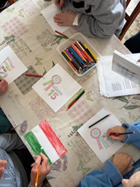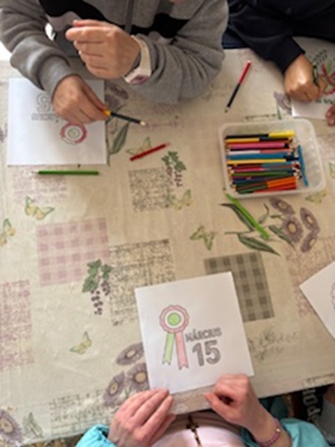 A jeles napról egy közös kézműves foglalkozás keretében emlékeztünk meg. A résztvevők nemzeti színű rajzokat és kokárdákat színeztek, valamint közösen toborzó dalokat énekeltünk. A dalok segítettek felidézni a forradalom hangulatát és a szabadság eszméjét.