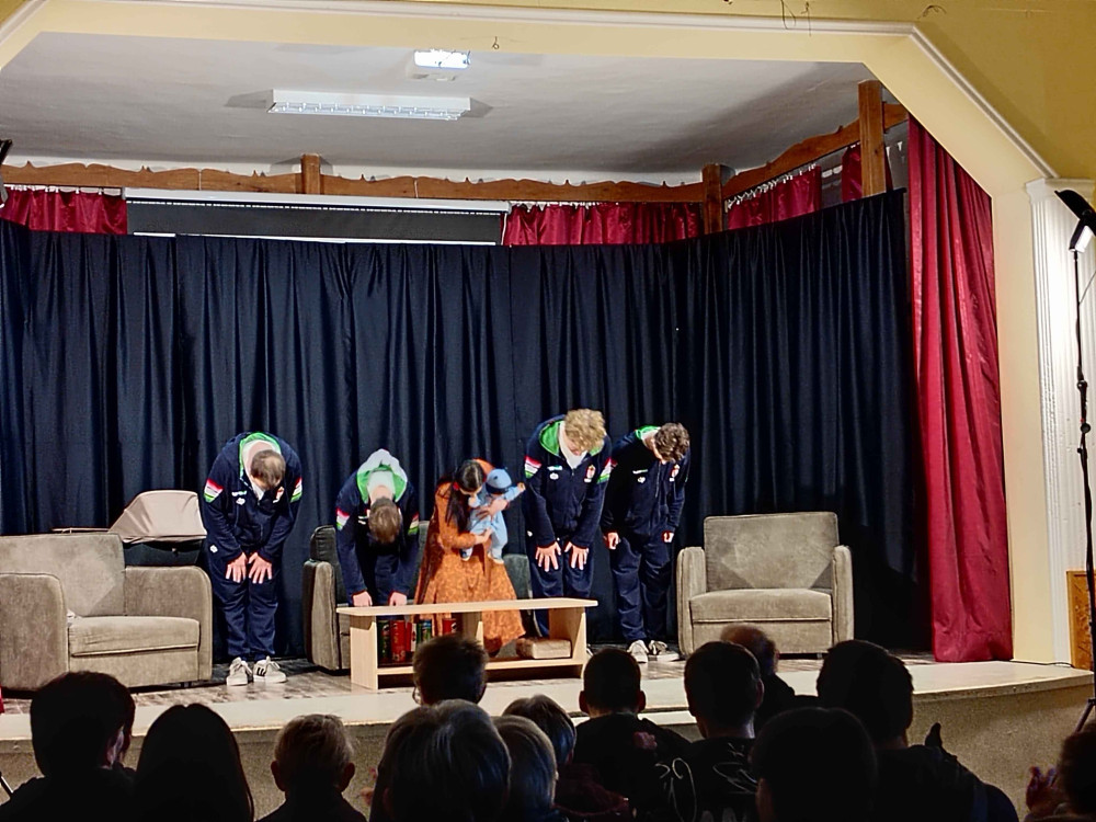 Ismét igazi varázslat költözött a lesencetomaji Művelődési Ház nézőterére a Pegazus Bábszínház jóvoltából. Bérletünk első darabját: a Csíjja csicsíjja című vidám, zenés bábburleszk- modern mesét tekinthettük meg 60 fő lakó részvételével. A történet mai keretek között, meseelemekkel átszőve szórakoztatta a résztvevőket. Az előadás emlékezetes élményt nyújtott. Ezúton is köszönjük az előadóknak ezt a vidám délelőttöt.