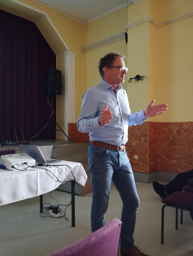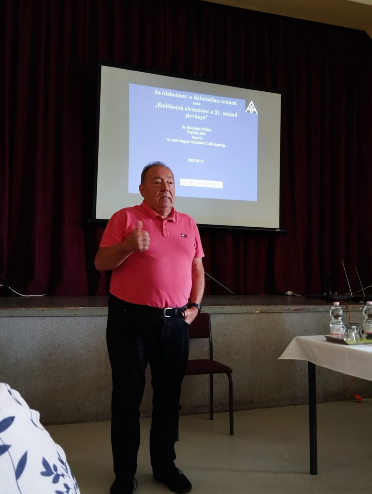 Dr. Menyhárt Miklós, az Első Magyar Alzheimer Café megalapítója, a győri Petz Aladár Egyetemi Oktatókórház Sürgősségi Betegellátó Osztály főorvosa, aki az Alzheimer-kórról és a vele kapcsolatos tapasztalatokról tartott megható és tanulságos előadást.