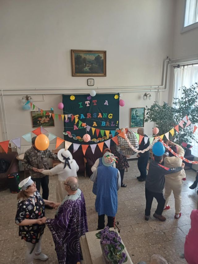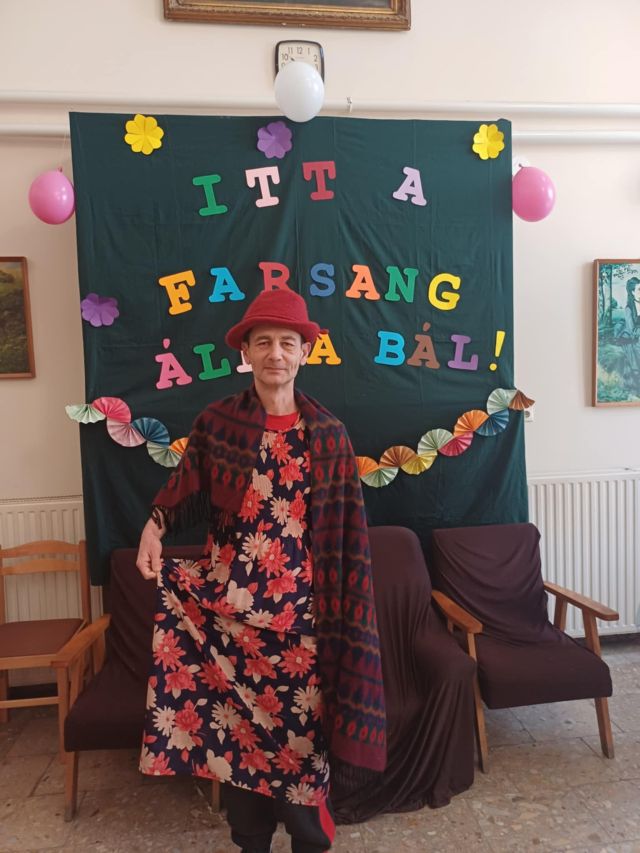 2025. 02. 13-án intézményünk falain belül megrendezésre került az idei évi Farsangi mulatság. Ellátottjaink és dolgozóink az előkészületek részeként örömmel válogatták jelmezeiket, volt, aki kalóznak, volt, aki papnak, volt, aki egyiptomi istennőnek, valamint a híres rajzfilmből Frédinek és Vilmának öltözött be. Ezután egy felvonulás keretein belül mindenki megmutathatta választott jelmezét, játékos feladatokat oldhattak meg. A kastélyt ezután zene hangjai töltötte be, mindenki megmutathatta kedvenc tánclépéseit.