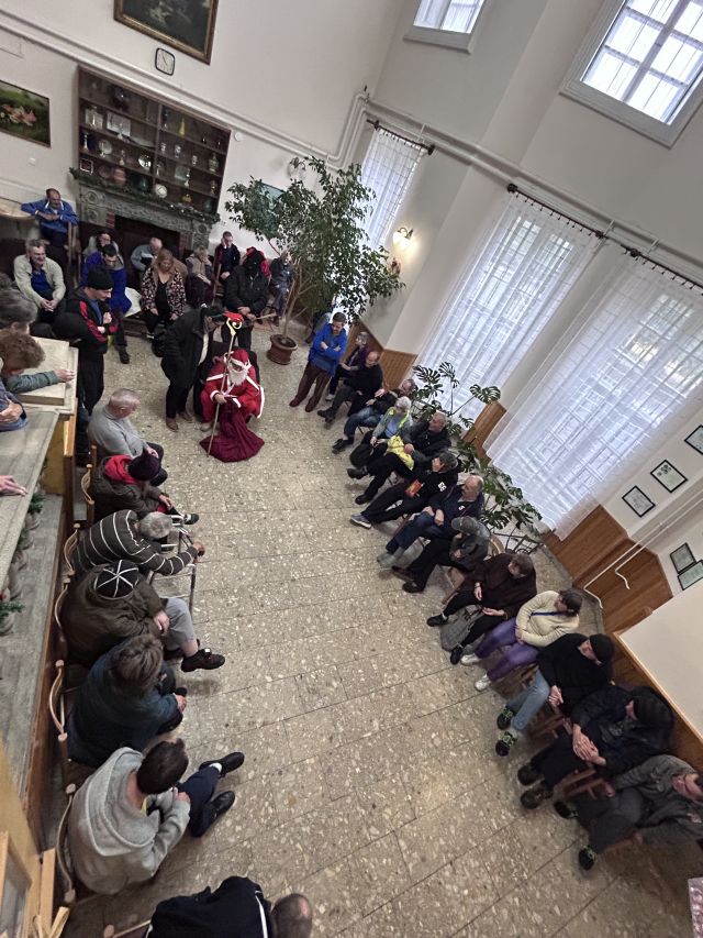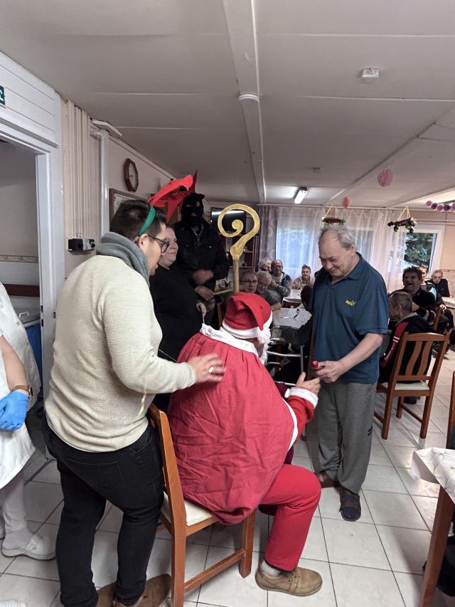 Ellátottjaink nagy énekszóval, versel fogadták 2025. 12. 05-én a hosszú útról érkező Mikulást. Az ajándék osztás közben mindenki kapott jó szót, de a krampuszok is tették a dolgukat és játékosan megdorgálták azokat, akik megérdemelték.