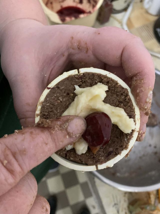 Férfi ellátottjaink azért végig kóstolgatták ezt a napot, nagyon büszkék voltak az elkészült piramisra és a somlói galuskára!