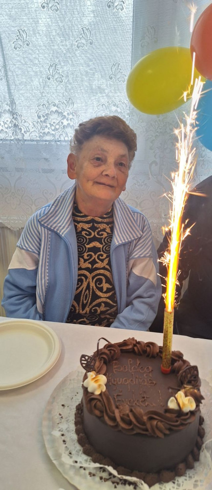 Kérésének eleget téve, tortát rendeltünk, a mentálhigiénés csoport szobát feldíszítettük, ez meglepetés volt számára. Jó hangulatban telt az ünnepség, közben sokat beszélgettünk.