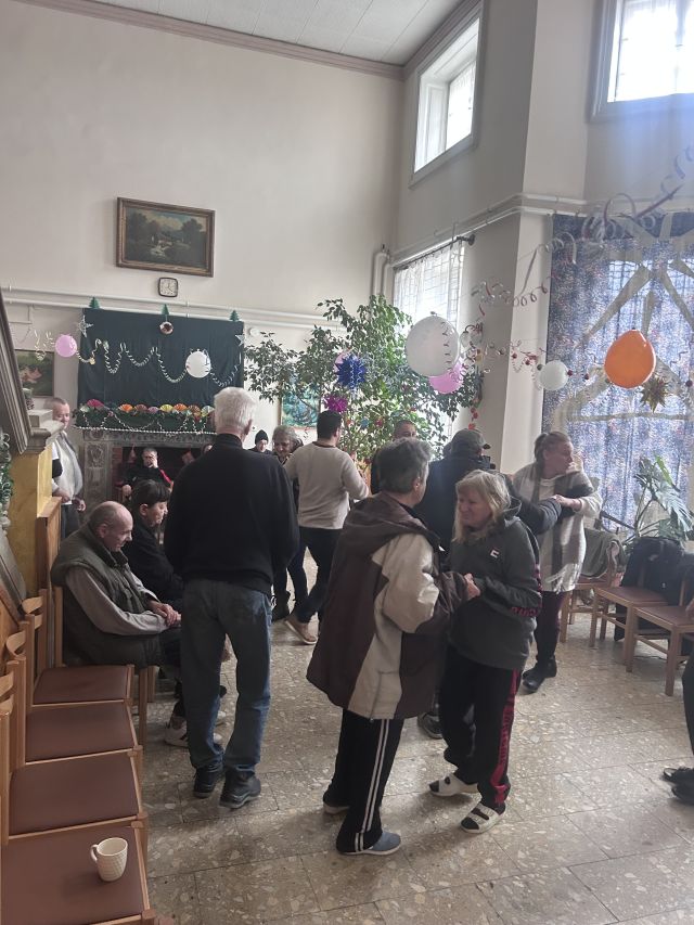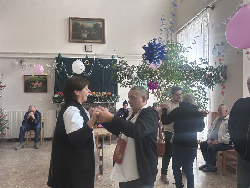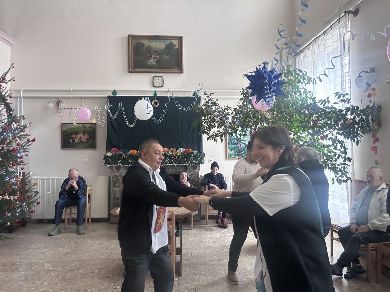 Már a dekoráció ideje alatt is vidám, mulatós nóta zengte be a kastély épületet. Táncra is perdültek ellátottjaink és a dolgozók egy része, mindenki hangolódik már az esti szilveszteri partyra.