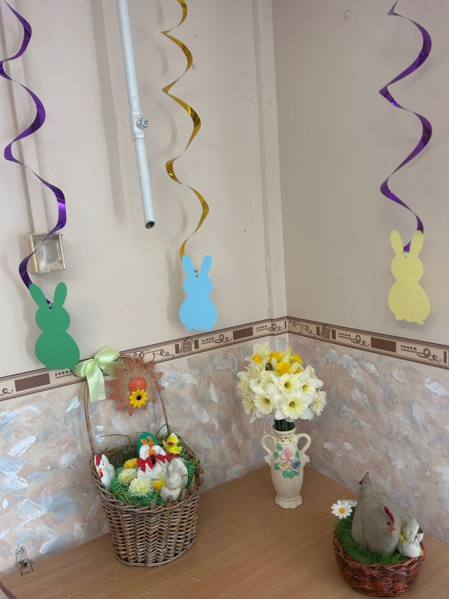 Az intézmény a tavaszi hangulat mellett ünnepi formát is öltött, ezáltal lakóink még nagyobb izgalommal várják a húsvéti időszakot.