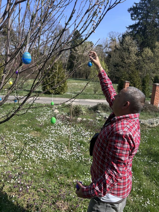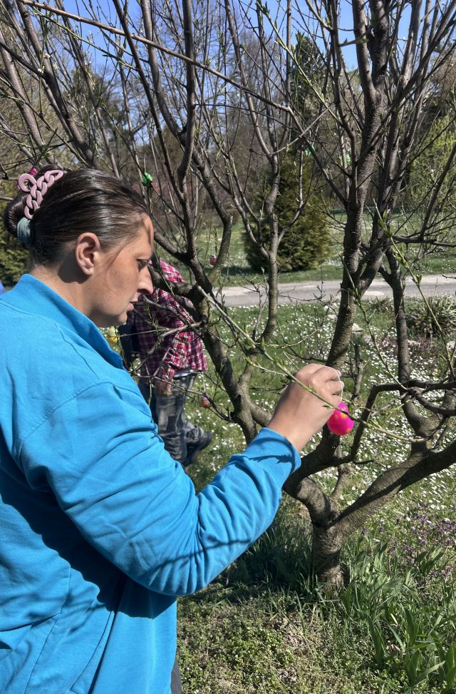 2026. 03. 23-a hetében nap, mint nap újabb díszek készültek, amiket ellátottjainkkal közösen ki is helyeztünk az intézmény lakóegységeiben. A korábbi évekhez képest a tojásfa is elkészült az udvaron, mely szintén kihagyhatatlan kelléke a tavaszi dekorációnak.