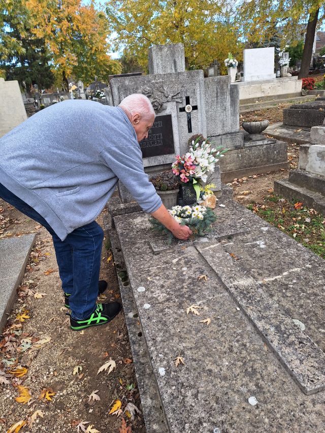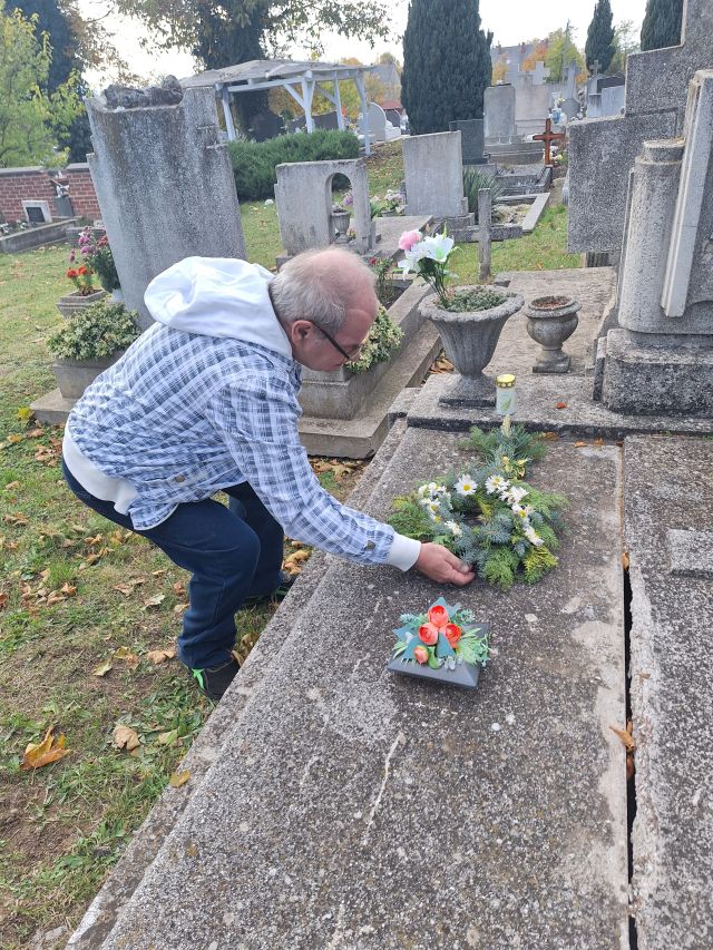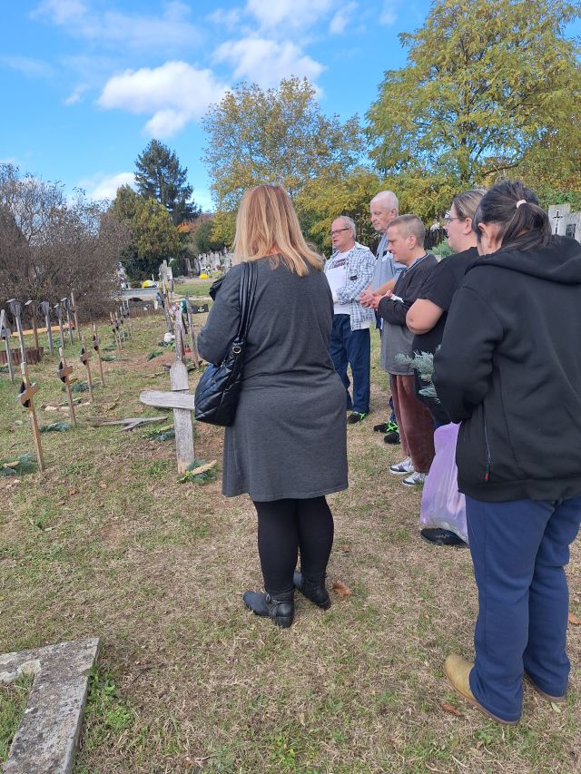 2025. 10. 31 -én ellátogattunk a sümegi temetőbe, ahova minden évben elmegyünk, hisz évről évre egyre több volt ellátottunk nyugszik ott. Míg elhelyeztük az általunk készített csokrokat, közben kedves emlékeket idéztünk fel ahogy a nevüket olvastuk a fejfán. Egyik ellátottunk szüleinek sírját is felkerestük, Lajos koszorút is vitt. Közösen imádkoztunk, énekeltünk.